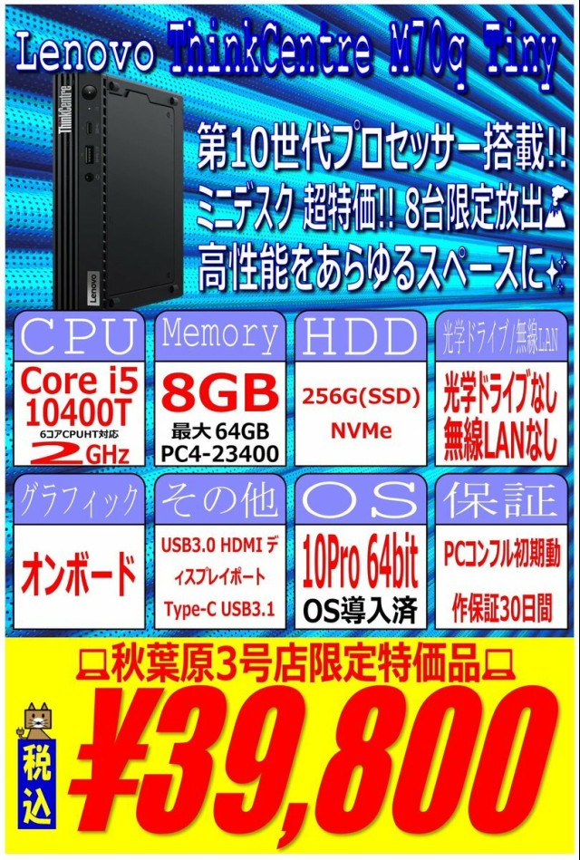 ?今週末限定【秋葉原3号店特価品】? 6⃣Lenovo ThinkCentre M70q Tiny 性能抜群新しめコンパクトなマイクロデスクトップPC!?️ カスタム性能もなかなかにございますよー ✅第10世代Core i5 ✅メモリ8GB ✅SSD256GB (NVMe) ✅Windows11対応? ?秋葉原3号店限定8台明日発売?
