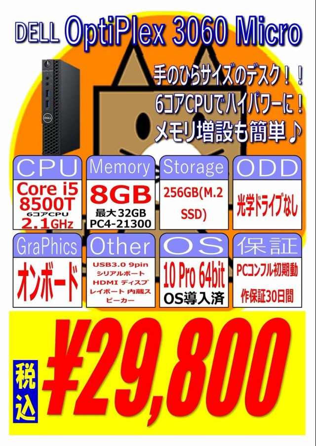 ?秋葉原本店 2/10(金)~12(日)限定特価品 2️⃣Optiplex 3060 Micro 手のひらサイズのデスクトップ‼️ 6コアになったi5はハイパワーに? カスタマイズしやすい1台♪ ✅i5 第8世代 ✅メモリ8GB ✅HDMI ?税込¥29,800-? ?秋葉原本店限定 計8台? 2023.02.27 PCコンフル秋葉原本店☆中古PCショップ @PCcomfullAKB