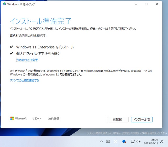 システム要件満たしてないOptiplex3020(画像右下に注目)で普通にアップデート通るね…。 普通は要件満たしてないと怒られてセットアップが終了しちゃうんだけど…。 2023.02.16 ごりぽん @goripon_tw