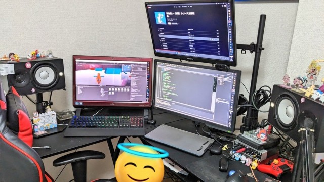 めちゃくちゃ模様替えした!! モニター2枚だと不便やから5万年前に使ってた一体型PC引っ張り出してきてモニターとして流用(近々イラストようのIPSモニター買う) スピーカー横置き普通に音良い!! 音楽できて絵も描けてゲームも作れるデスクで最強!!?? 2023.03.24 ミーシー@イラスト依頼募集中 @mece_pokeee