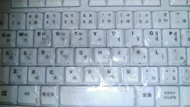 をサランラップで代用したのだが、やはり耐久性が無い。 ホームポジションのA〜FとJ〜;、母音のAIUEOは元から補強したが、何故かTが破れていたので補強した。 さて…寝ます( ˘ω˘ ) スヤァ