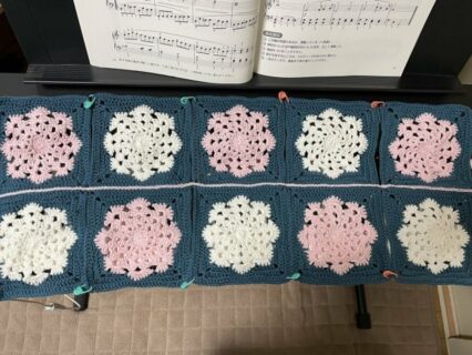 グッズ ♬キーボードカバー モチーフが10枚編めたので繋げてみました。 良い感じです♪ ◆雪の結晶モチーフ❄️の編み方 RIKA Channel