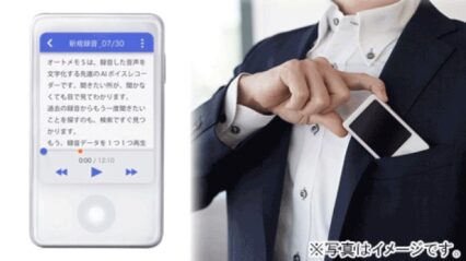 デバイス 録音した音声を文字に起こせる、テキスト化機能付きAIボイスレコーダー! タッチパネルディスプレイ搭載で、文面を本体で確認可能! 文面はメールでPCに送信できるので、議事録や原稿の作成にも便利です。 ⇒r.