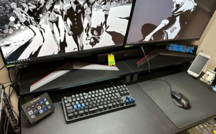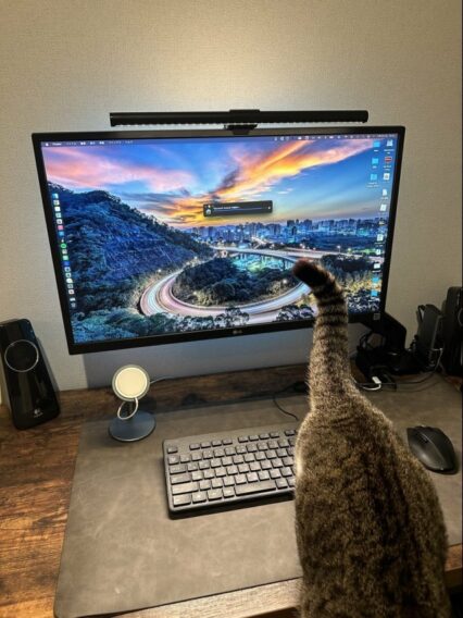 デバイス ipadで配信見ながらPCデスク回りをいじった 机の問題でモニターアーム実装できない(クランプ使えない&机に穴あけるのめんどくさい)のでかわりにモニター台を実装 あとディスプレイライトつけたりしたので後ろの配線もやり直してたら2時間以上経ってた
