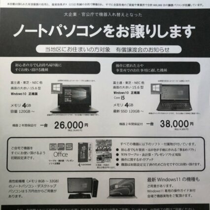 パソコン 事務所のポストに、情弱相手のちょっとアレな中古PCブローカーがこんなチラシを投げ込んできた……で、その「Core i5」ってのは第何世代なのかちゃんと書いてみせろよw