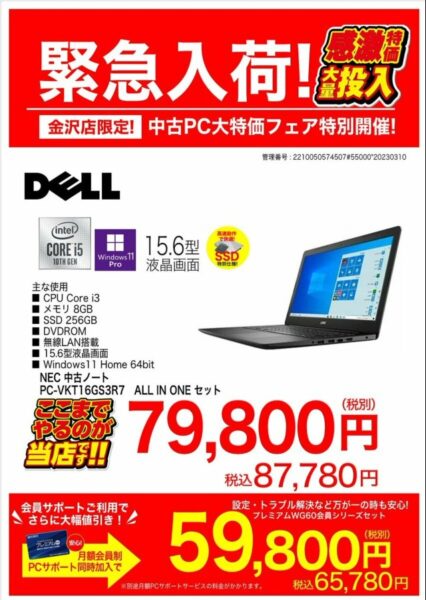 パソコン ★中古PC特別キャンペーン★ お買い得な中古PCに安心サポートまでついて今ならこの価格! 先着1台限りです! 担当からの一言 「第10世代のCPU搭載のパソコンです!!」 お問い合わせはこちらから Tel:076‐294-1601