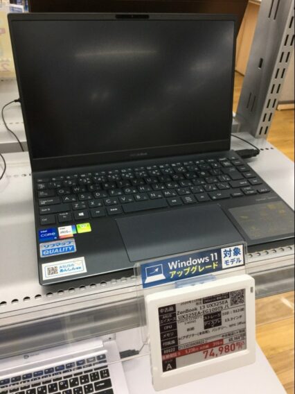パソコン ✨お買い得中古PCのご紹介‼️ 【中古品】 Zen Book 13 UX325EA ✅Core i5 1135G7(2.4GHz) ✅SSD:512GB ✅メモリ8GB ✅ 【税込74,980円】 Windows11に更新可能✨ また本日 開催中‼️ ダウンロードで5%ポイントサービス中?✨