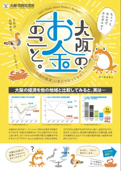 メーカー 大阪・市民交流会 の新チラシを制作しました。今回は「大阪のお金」を切り口に、私たちの暮らしと行政が密接に繋がっていることを広く訴求する内容です。 同会HPでもプリント用PDFを配布予定。もしよければ↓の画像と共に拡散へのご協力をよろしくお願いいたします。?
