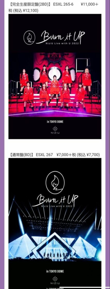 メーカー どっちが正解なんだろう⁉️ 左:NiziU Twitter Linkより 右:NiziU official HPより NiziU Burn it Up Blu-ray
